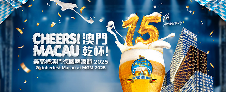 美高梅澳門德國啤酒節來到第十五屆,今年由熱情奔放的德國樂隊、身穿民族服飾的表演者和悠揚歡快的巴伐利亞音樂為入場人士點燃節日氣氛。現場更有各式道地德國燒肉佳餚,搭配官方指定盧雲堡啤酒,歡迎大家一起共赴慶典。